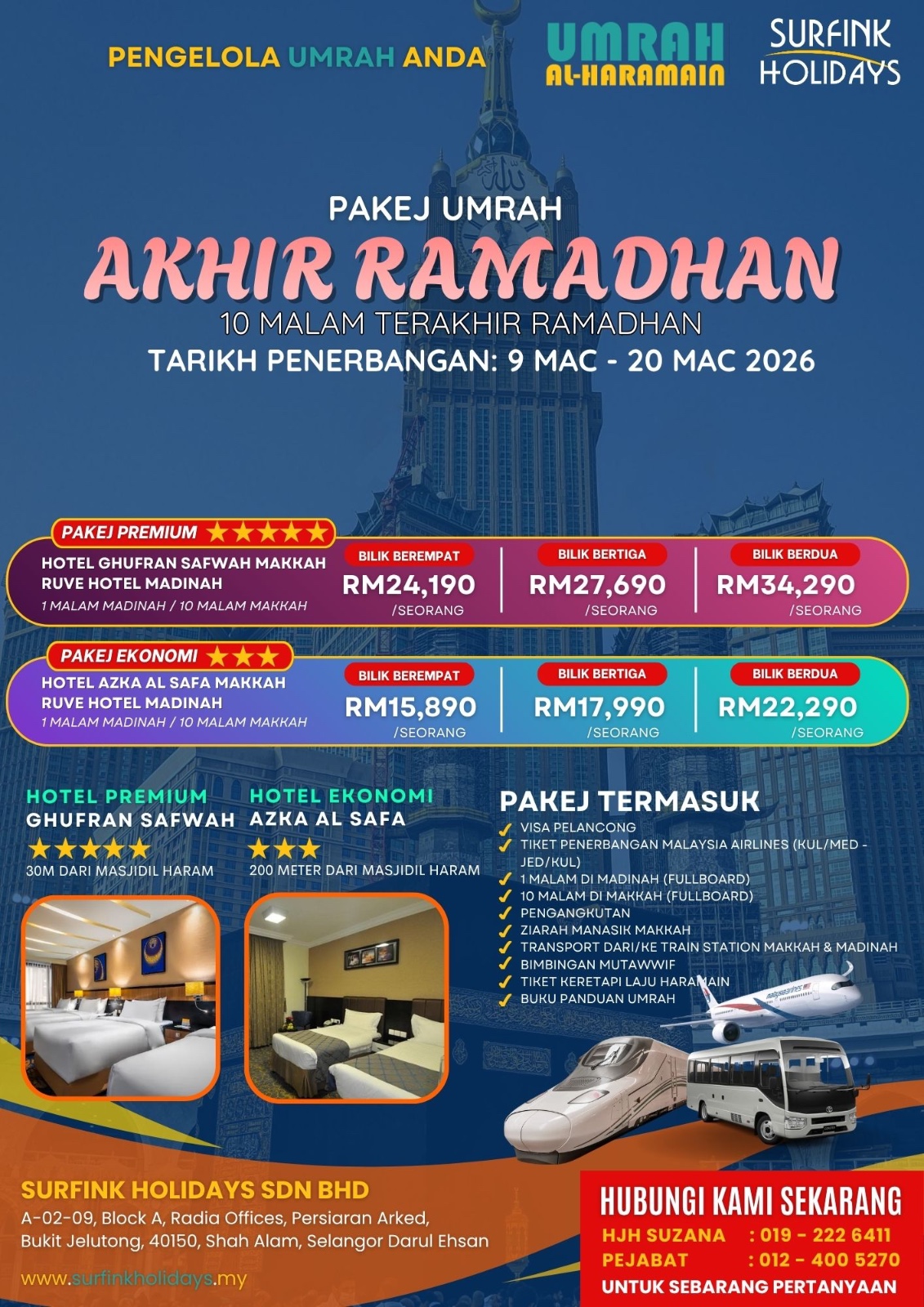 9 Mac 2026 - 20 Mac 2026 (12 Hari 10 Malam)